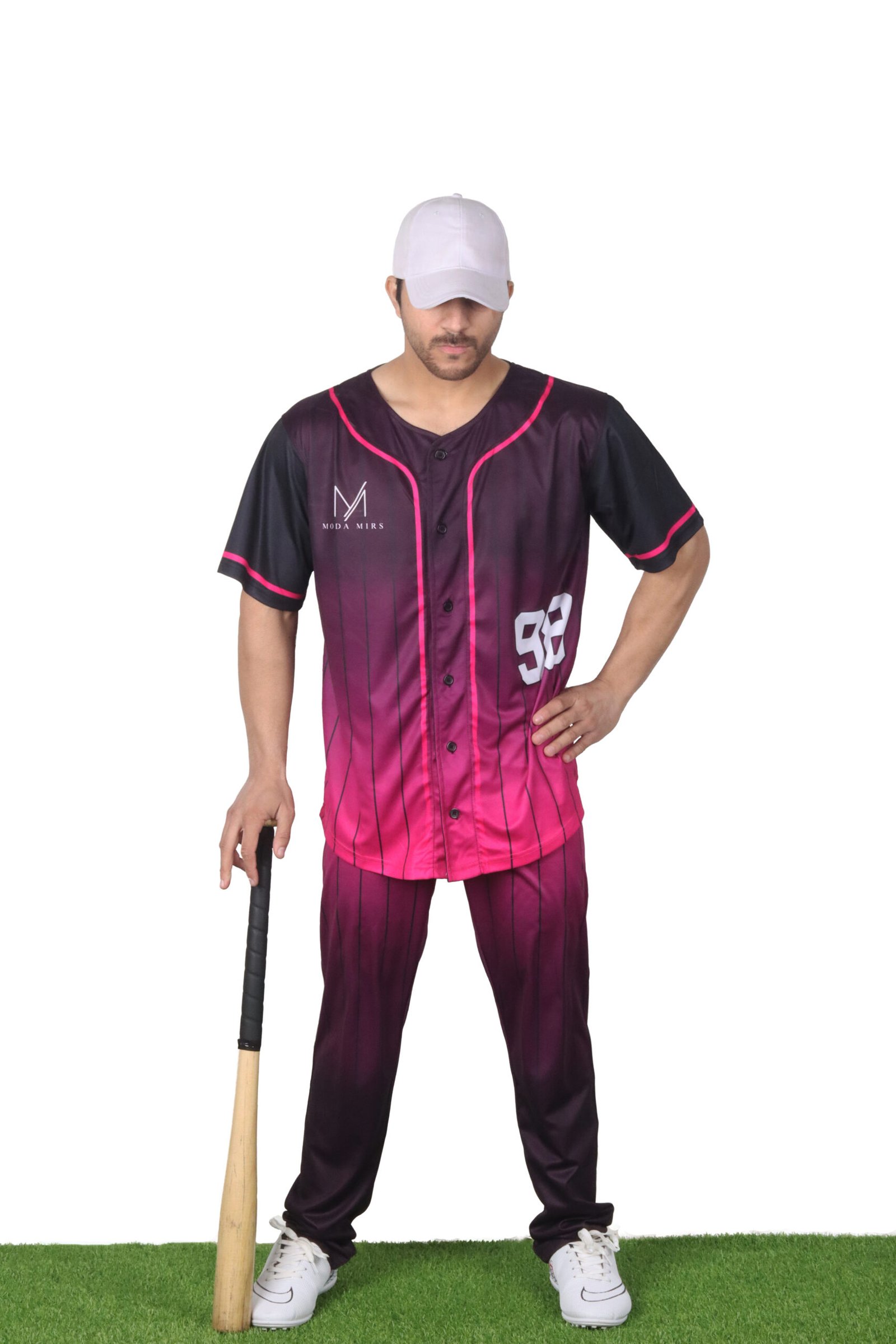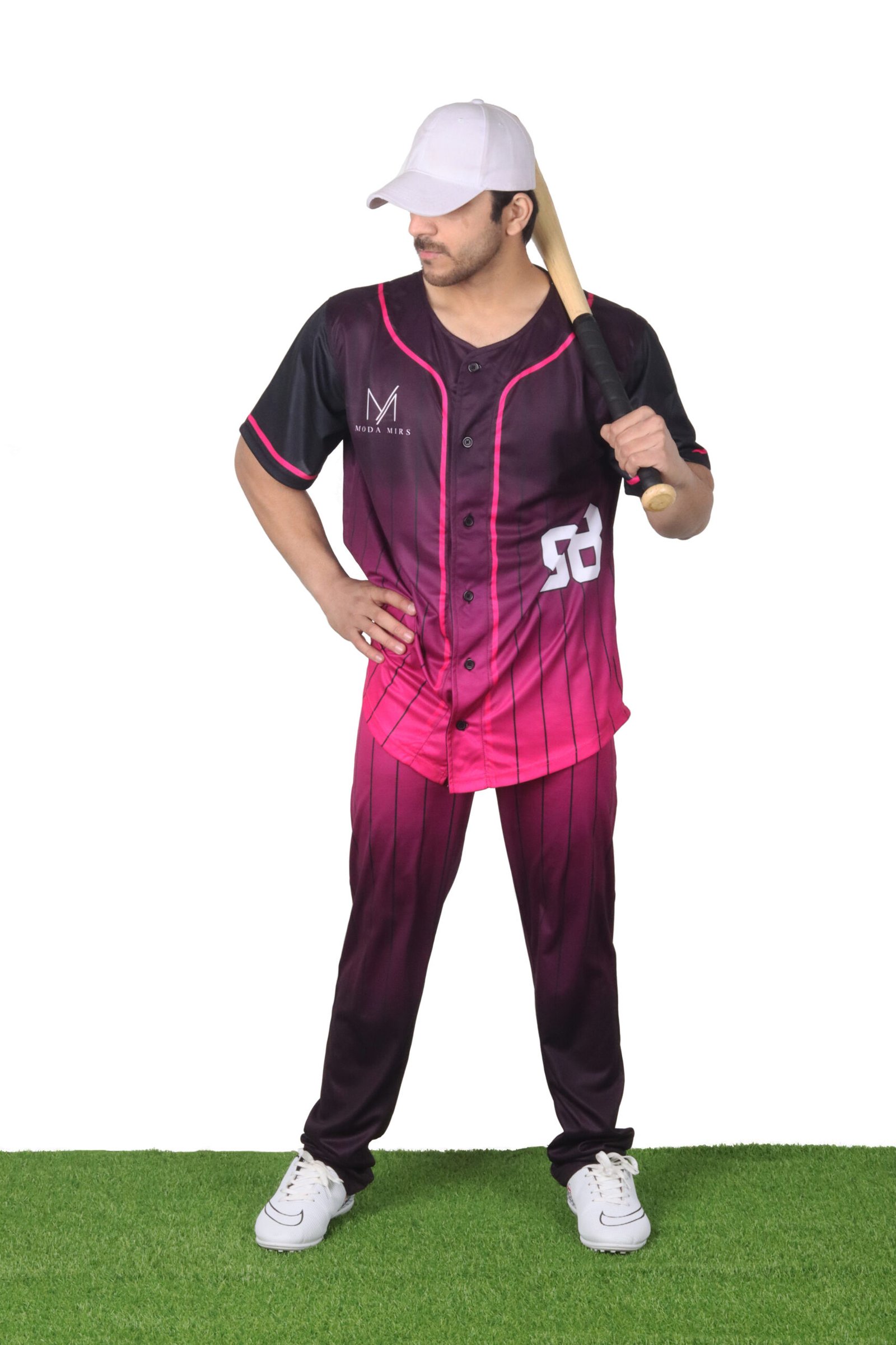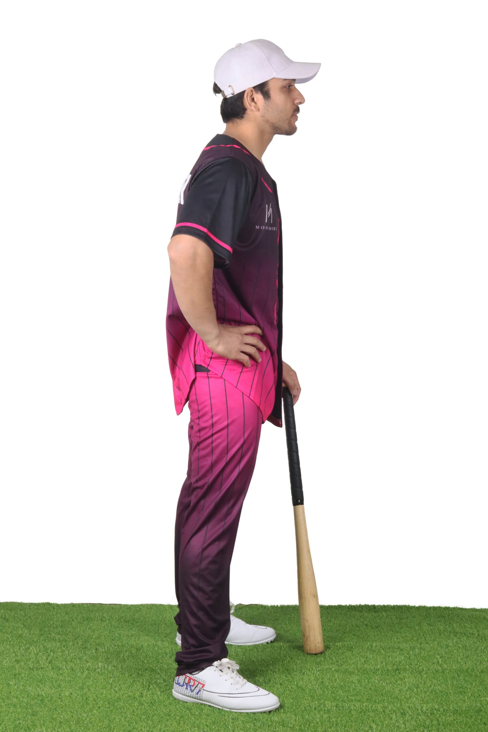 Fade-transition color blend (deep maroon to vibrant pink) with vertical pinstripes for a contemporary, high-visibility team look.